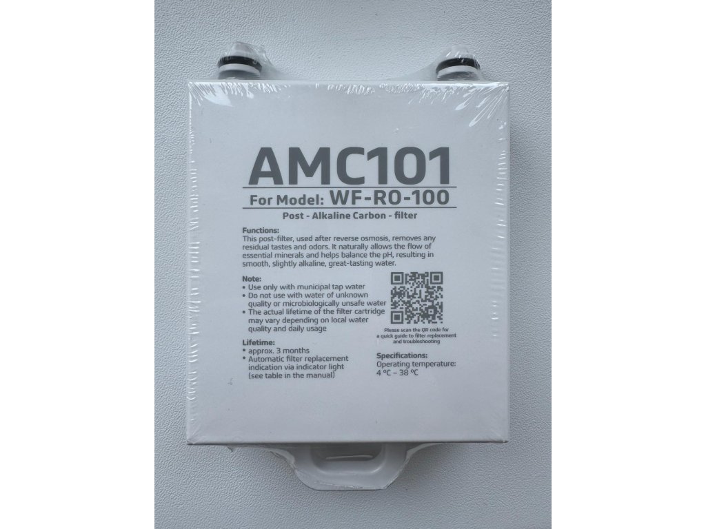 AMC101 je uhlíkový post-filtr, který je určen pro závěrečnou úpravu vody po reverzní osmóze (RO). Slouží především k doladění chuti a odstranění případných zbytkových pachů či látek, které mohou ve vodě zůstat po RO filtraci.
